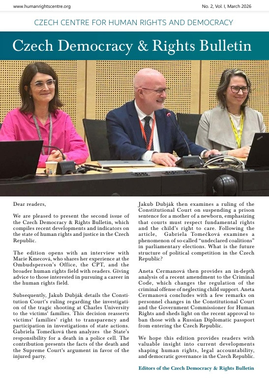 We are pleased to present the second issue of the Czech Democracy & Rights Bulletin, which compiles recent developments and indicators on the state of human rights and justice in the Czech Republic.