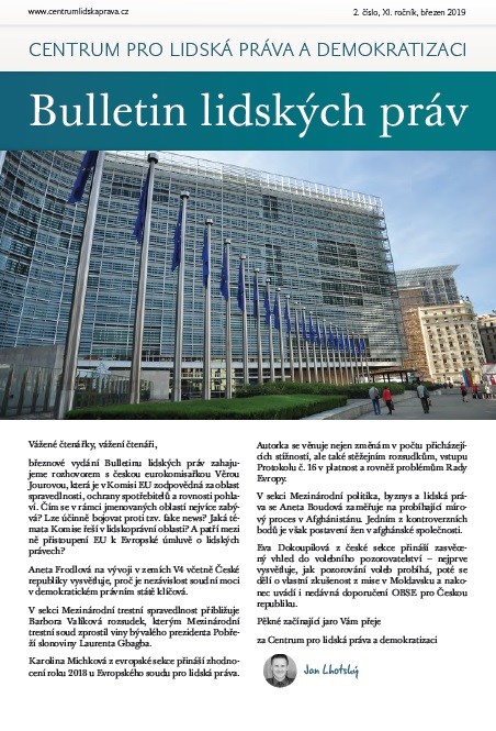 The March Bulletin opens with an interview with Věra Jourová, a Czech EU Commissioner for Justice, Consumers and Gender Equality. What does she focus on within the given fields? Is it possible to effectively fight fake news? What topics does the Commission focus on within the area of human rights? Does the accession of the European Union to the European Convention of Human Rights belong among them?